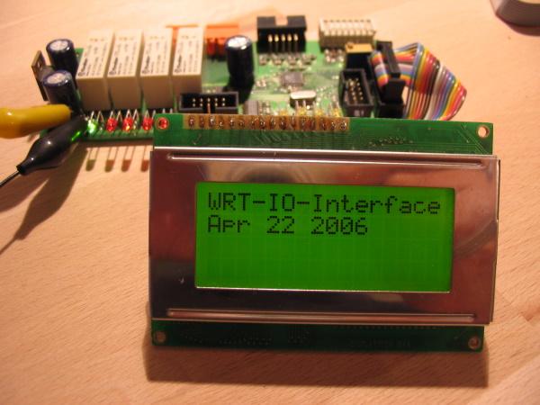 Das Interface ist um einen ATMEGA8 herum aufgebaut, der über die serielle Schnitstelle mit dem DTE-Ausgang des WRT54GS (TTYS1) kommuniziert. Die Steuerung des Interface erfolgt durch Kommandos, die der Router als ASCII-codierte Nachrichten schickt. Damit kann das Interface im einfachsten Fall durch die Umleitung Ausgaben auf die TTYS1 angesprochen werden. Alternativ können natürlich auch alle verfügbaren Scriptsprachen usw. genutzt werden.