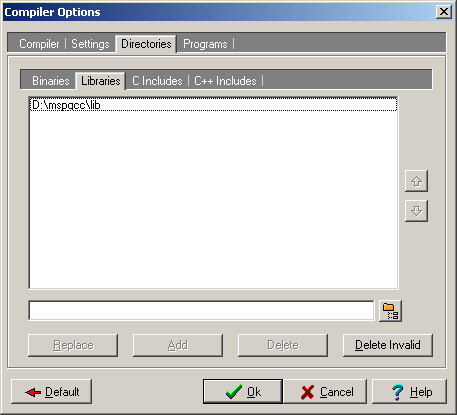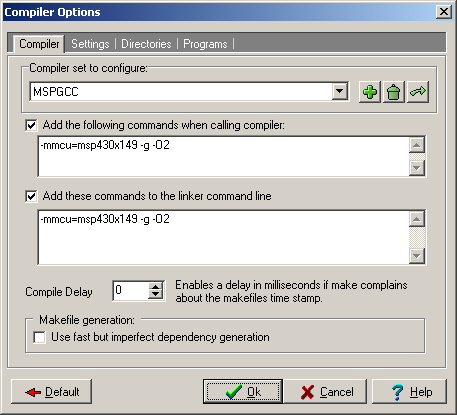 Definition eines neuen “Compiler sets” für den MSPGCC: