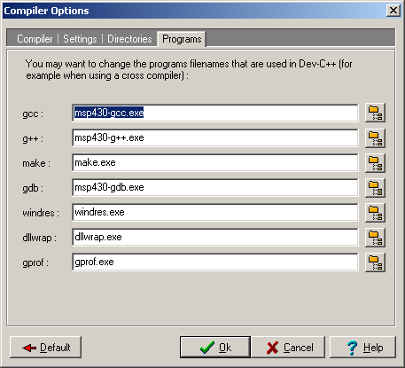 - Für diese Anleitung wurde der MSPGCC-Compiler in der Version vom Nov. 2005 benutzt. Bei Dev-C++ wurde die Beta zur Version 5 in der Version 4.9.9.2 verwendet.