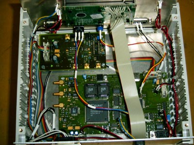 Down below you can see the digital signal processing board and above there is the analoge amplifier board. The cabling is the unit is not complete.