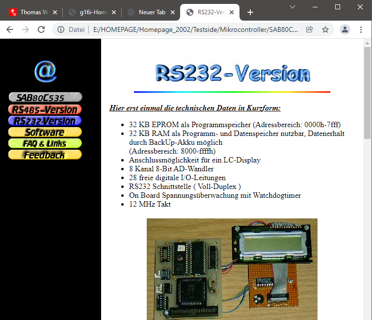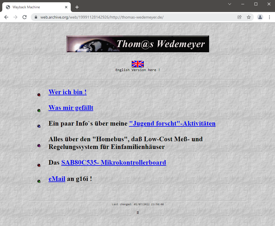 The whole website was coded directly in HTML with tables etc. and all without CSS, Javascript and stuff like that! Doesn’t look that great today, but 20 years later this old stuff still works in a modern browser!